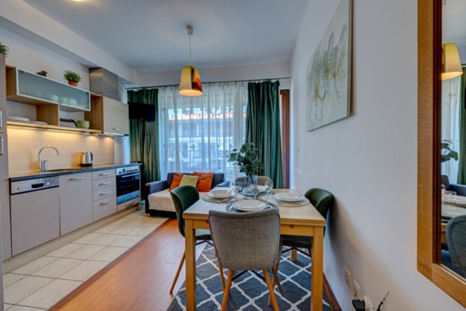 Eine komfortable Zweizimmerwohnung, komplett ausgestattet, die hervorragende Bedingungen zum Entspannen für 5 Personen bietet, die Platz und Luxus mögen.