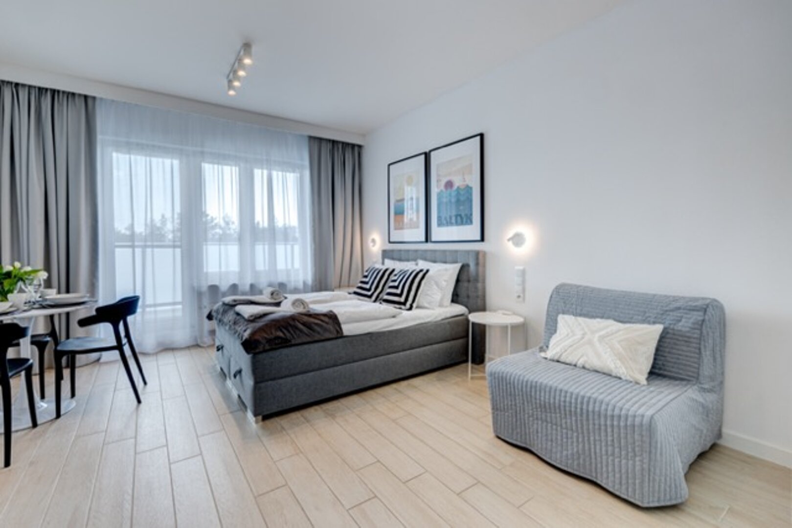 Eine komfortable Zweizimmerwohnung, komplett ausgestattet, die hervorragende Bedingungen zum Entspannen für 4 Personen bietet. Es befindet sich im Erdgescoss des Baltic Waves Resort-Komplexes, etwa 400 m vom Strand entfernt.