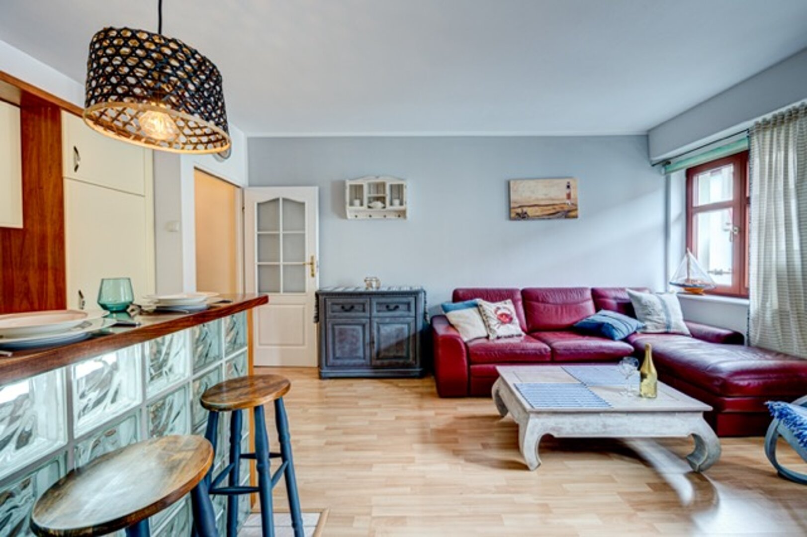 Voll ausgestattete, gut gelegene, ganzjährige Wohnung. Es liegt direkt neben dem Strand und der Promenade im Küstenviertel Swinemünde. Es besteht aus einem Schlafzimmer, einem Wohnzimmer, einer Küchenzeile und einem Badezimmer mit Duschkabine und Waschmas
