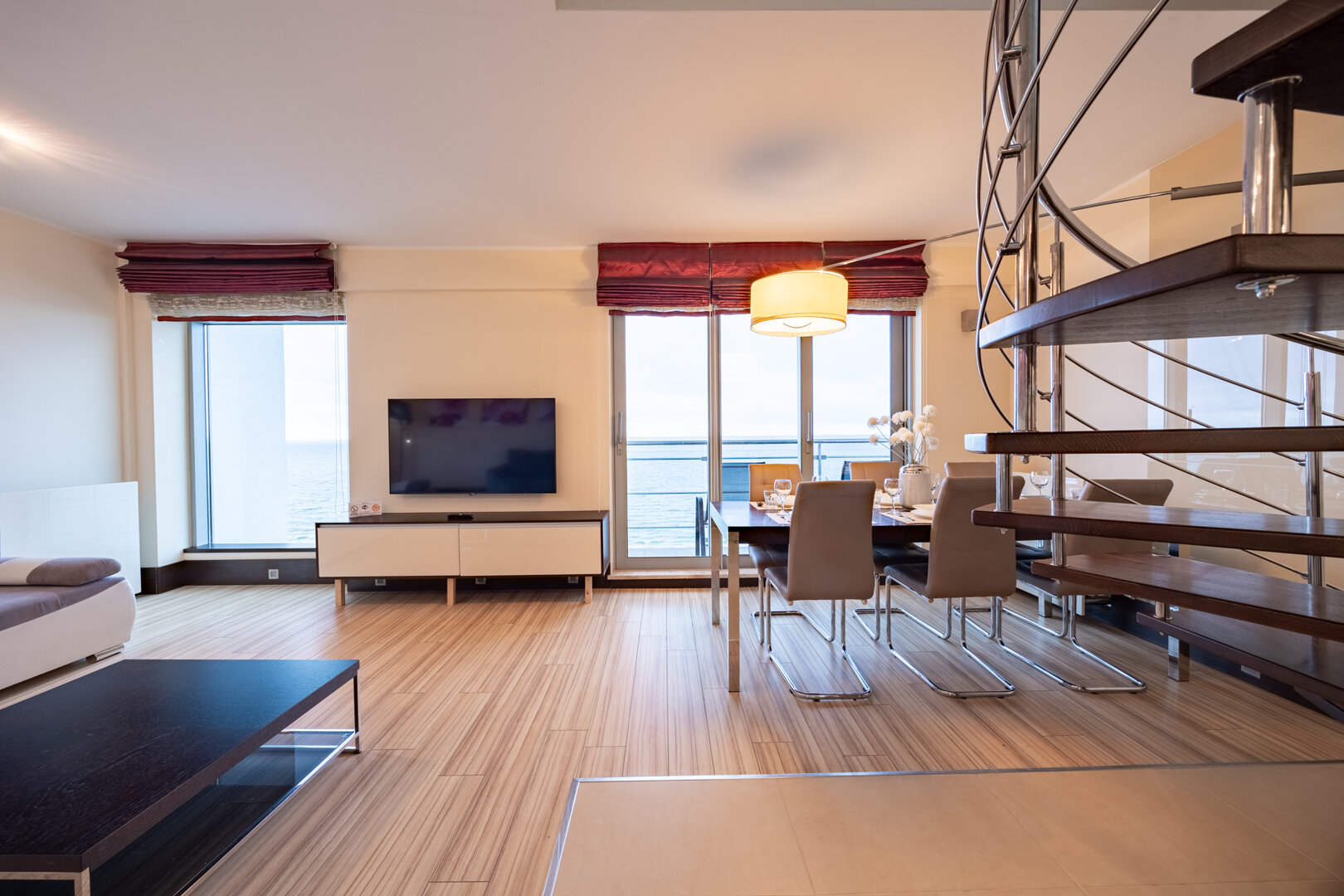 Das 2-stöckige Apartment befindet sich im zehnten Stock eines Gebäudes mit Aufzug an der berühmten Promenade Gwiazd . Die Lage der Anlage inmitten der grünen Spa-Zone garantiert eine ruhige Erholung. In der Nähe befindet sich ein sauberer Sandstrand, der