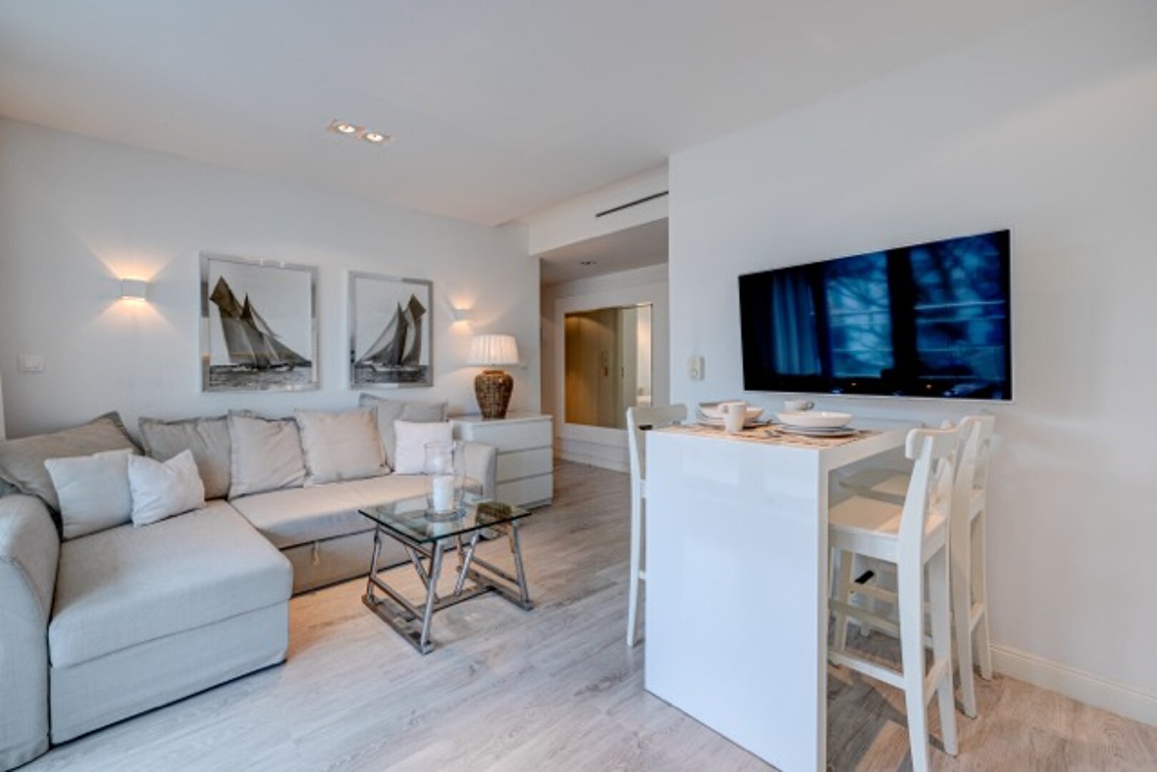 A luxurious apartment with a beautiful view of greenery is located in the Aquamarina apartment complex. The complex is located in the forest, on the seafront, right next to the beach. Aquamarina is a unique place for everyone looking for peace and quiet,
