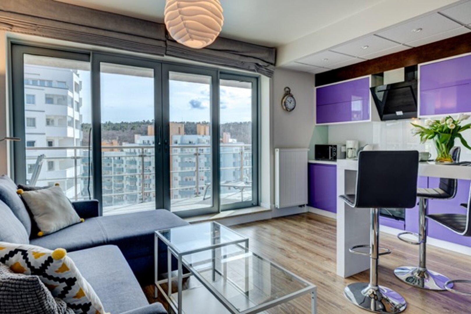 The apartment is located on the eighth floor of a building with an elevator near the famous Promenade of Stars . The location of the facility, in the vicinity of the Wolin National Park, guarantees a peaceful rest. There is a clean, sandy beach nearby, in