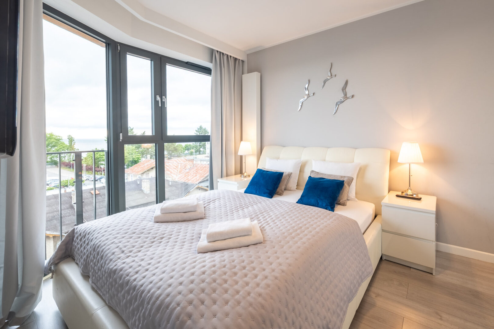 The apartment is located in the Aquamarina apartment complex. The complex is located in the forest, on the seafront, right next to the beach. Aquamarina is a unique place for everyone looking for peace and quiet, away from the city center.