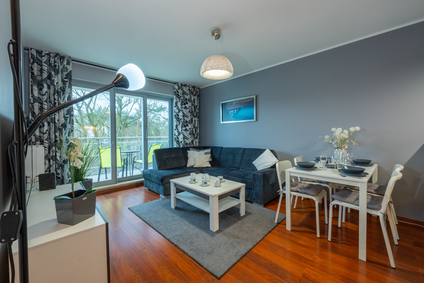 Komfortowy dwupokojowy apartament, kompleksowo wyposażony, zapewniający znakomite warunki do wypoczynku dla 4 osób. Usytuowany jest na wysokim parterze w kompleksie Baltic Waves Resort, położonym ok. 400 m od plaży.